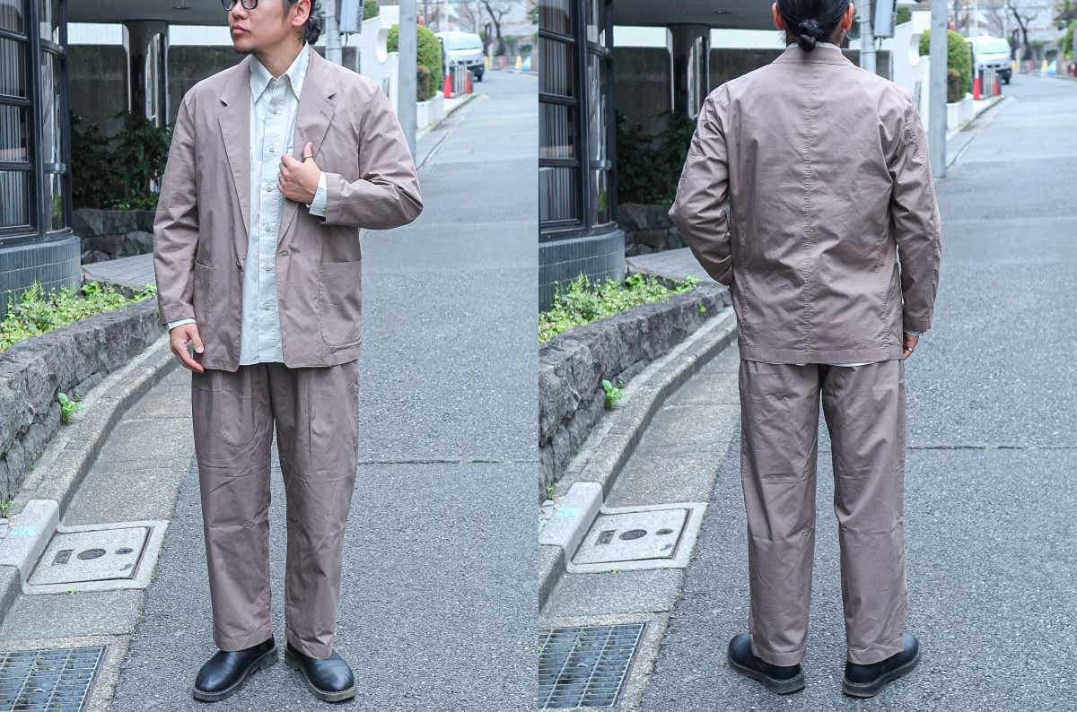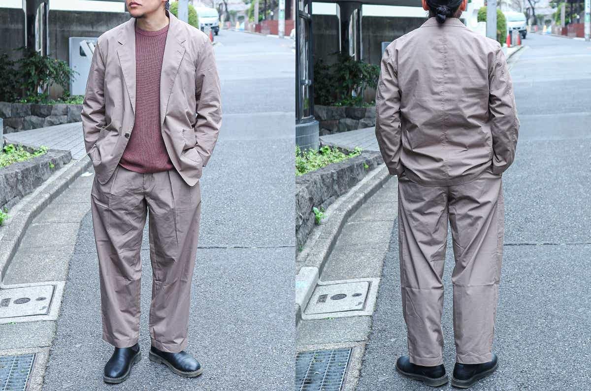 ジャケットは、袖のボタンとチェストポケットが無かったり、ボタンの位置が低めで二つではなく一つだけだったり、そういうデザインのシンプルさがリラックス感に繋がっているんだと思いました。