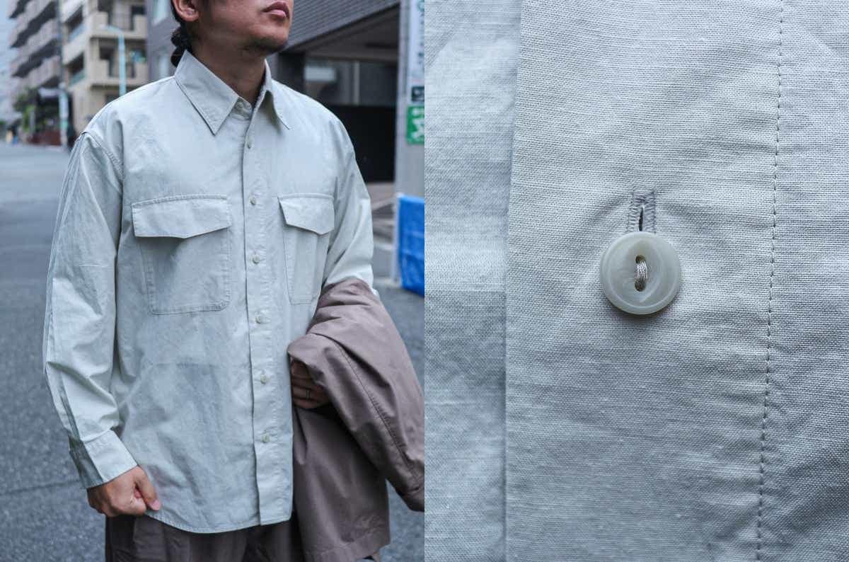 両胸に備えた大きなフラップポケットがデザインアクセントとなり、セットアップと合わせることで、ほどよくカジュアルダウンしたスタイルを演出します。そのままキャンプに持ち出せる気軽さも、この一着の魅力です。