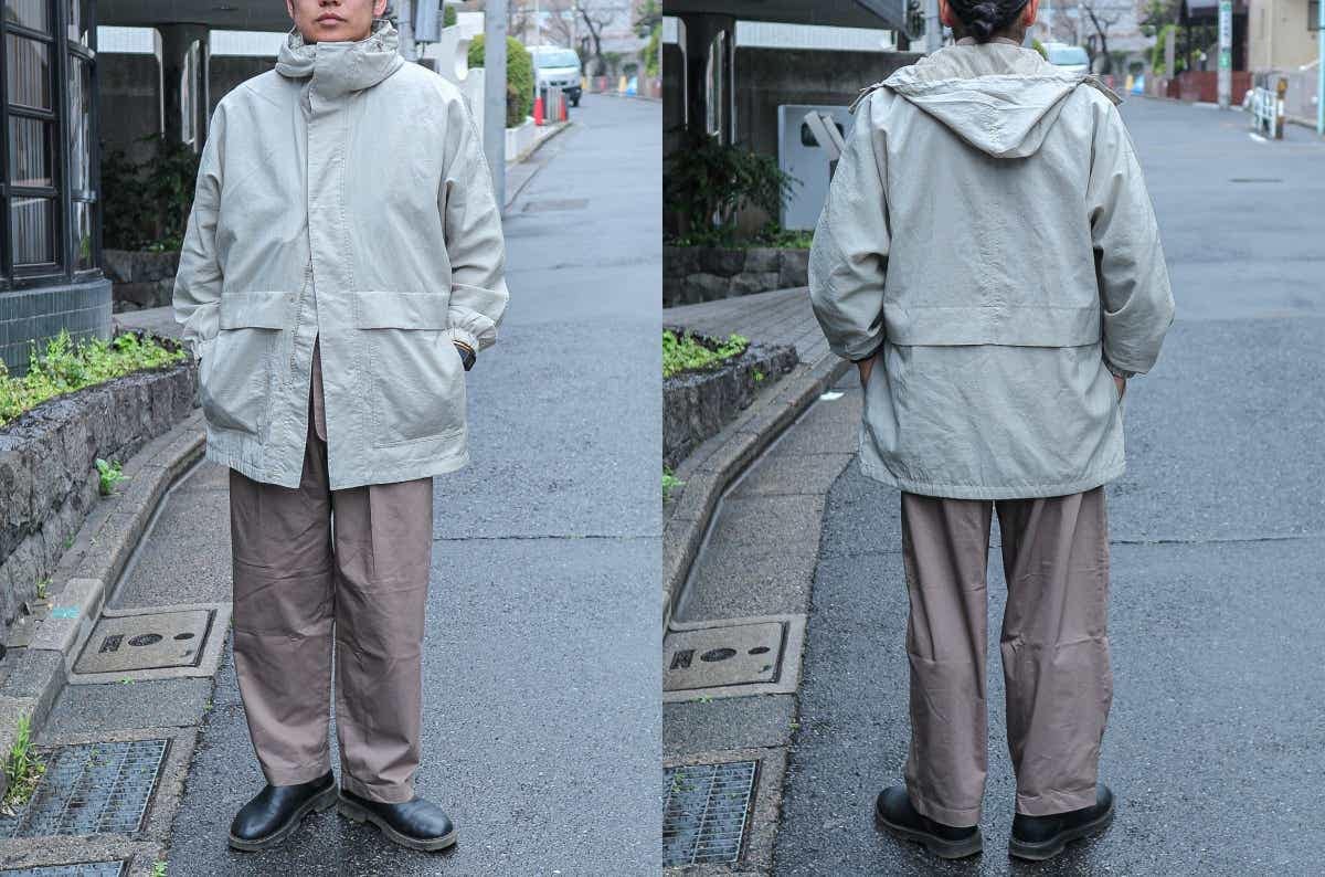 ほどよく厚みのあるナイロングログランを使用したユーティリティパーカ(9,990円)。