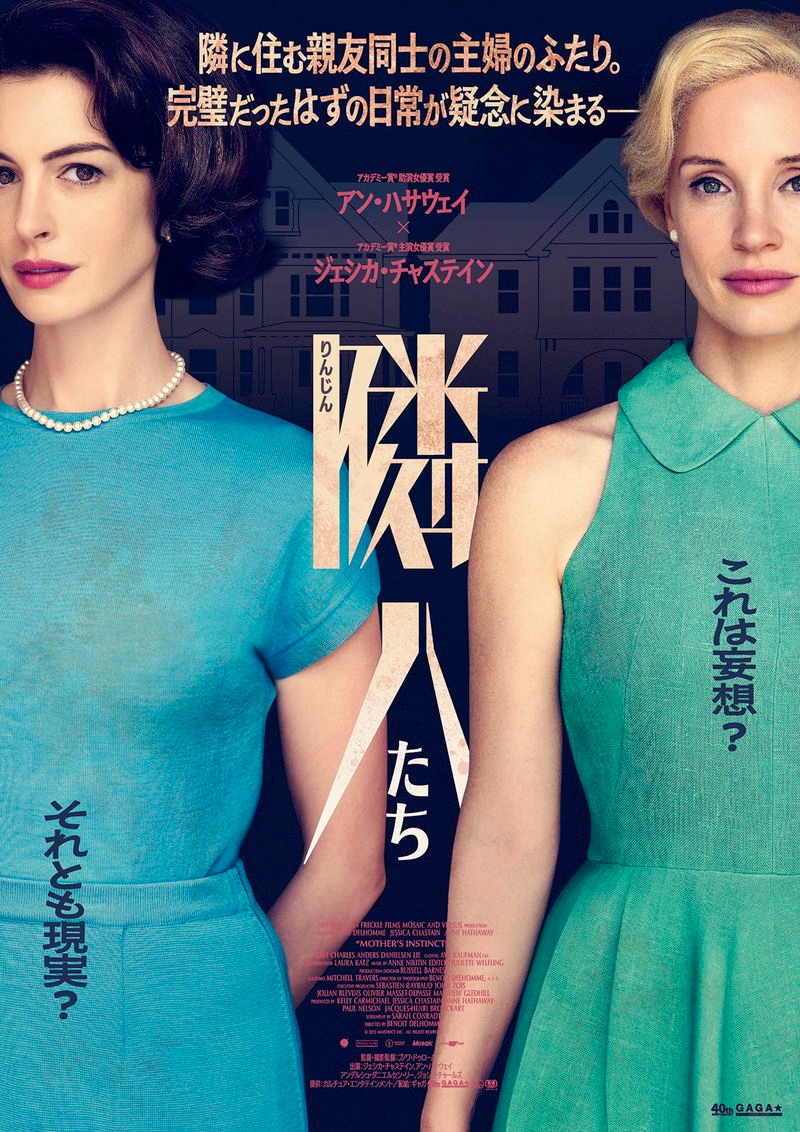 「隣人たち」の舞台は、1960年代のアメリカ。大都市の郊外で隣同士の家に住む、親友のセリーヌ(アン・ハサウェイ)とアリス(ジェシカ・チャステイン)。お互いに裕福な家庭で同い年の一人息子を持つ2人は、完璧で幸せな生活を送っていた。しかしある日、セリーヌの息子が不幸な事故に遭ったことで関係性が一変。喪失感に苦しむセリーヌは、次第にアリスの息子・テオに心を通わせるようになっていく。その様子に疑念を持ち始めるアリス。徐々にアリスの行動はエスカレートしていき、やがてふたりは狂気と妄想の渦に飲み込まれていく。