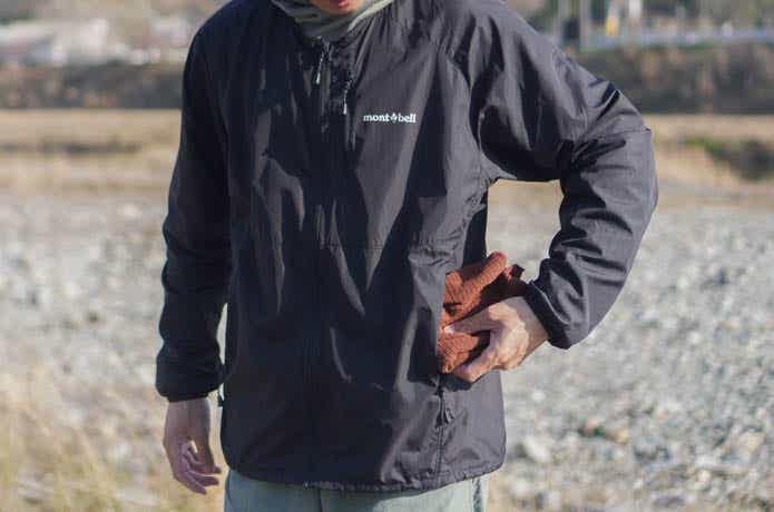 防風レイヤーをスルッと差し込めるこの感じ、山ではかなり助かります。