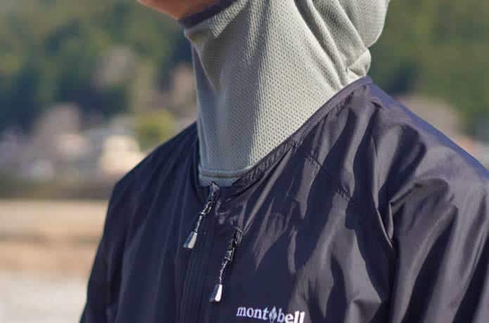 僕は普段フード付きのベースレイヤーを着ることが多いのですが、Vネックのおかげでこの通り! 首まわりはスッキリ快適です。
