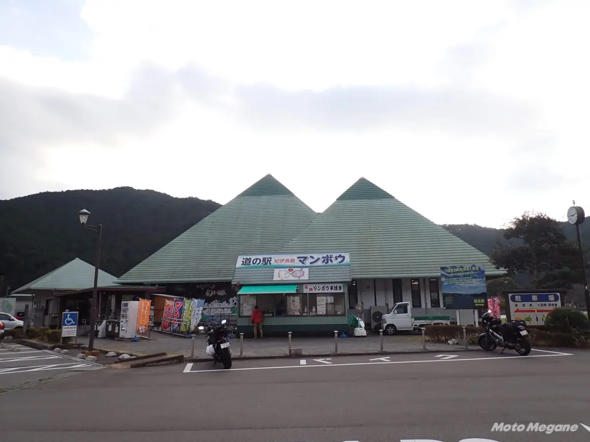 道の駅があるのはR42とR260が交わる場所でもあり、伊勢方面、志摩方面、和歌山方面どこから来ても休憩するのにちょうどよく、多くのライダーが立ち寄るスポットだ。バイク駐輪場はマンボウ屋台の正面と屋根付き駐輪場の2ヶ所が用意されている。伊勢方面からのアクセスは、内陸を走るR42か、志摩と紀伊長島を結ぶR260を利用する。R260はリアス式海岸に沿って通っていて、新道はトンネルが多く走りやすいが少し時間がかかる。