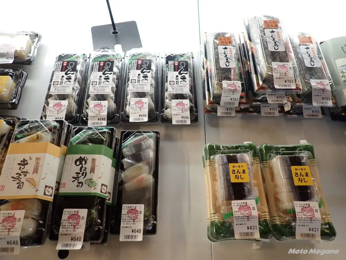 紀北町を含む東紀州の郷土料理。広くは志摩半島から和歌山県までの熊野灘沿岸一帯に伝わる寿司で、主に祝いの席や祭事などで食べられる。サンマを酢締めにしてから棒寿司にするが店ごとに味や作り方が異なる。物産館にはさまざまな種類のさんま寿司が並び、焼きさんま寿司もある。