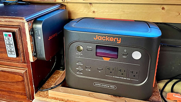 ポータブル電源のDC入力プラグはメーカーや機種によって規格が異なるが、Jackeryのポータブル電源で最も多く採用されているDC8020プラグなので、Jackery 1500 Newにはアダプター不要ですんなり接続することができる。