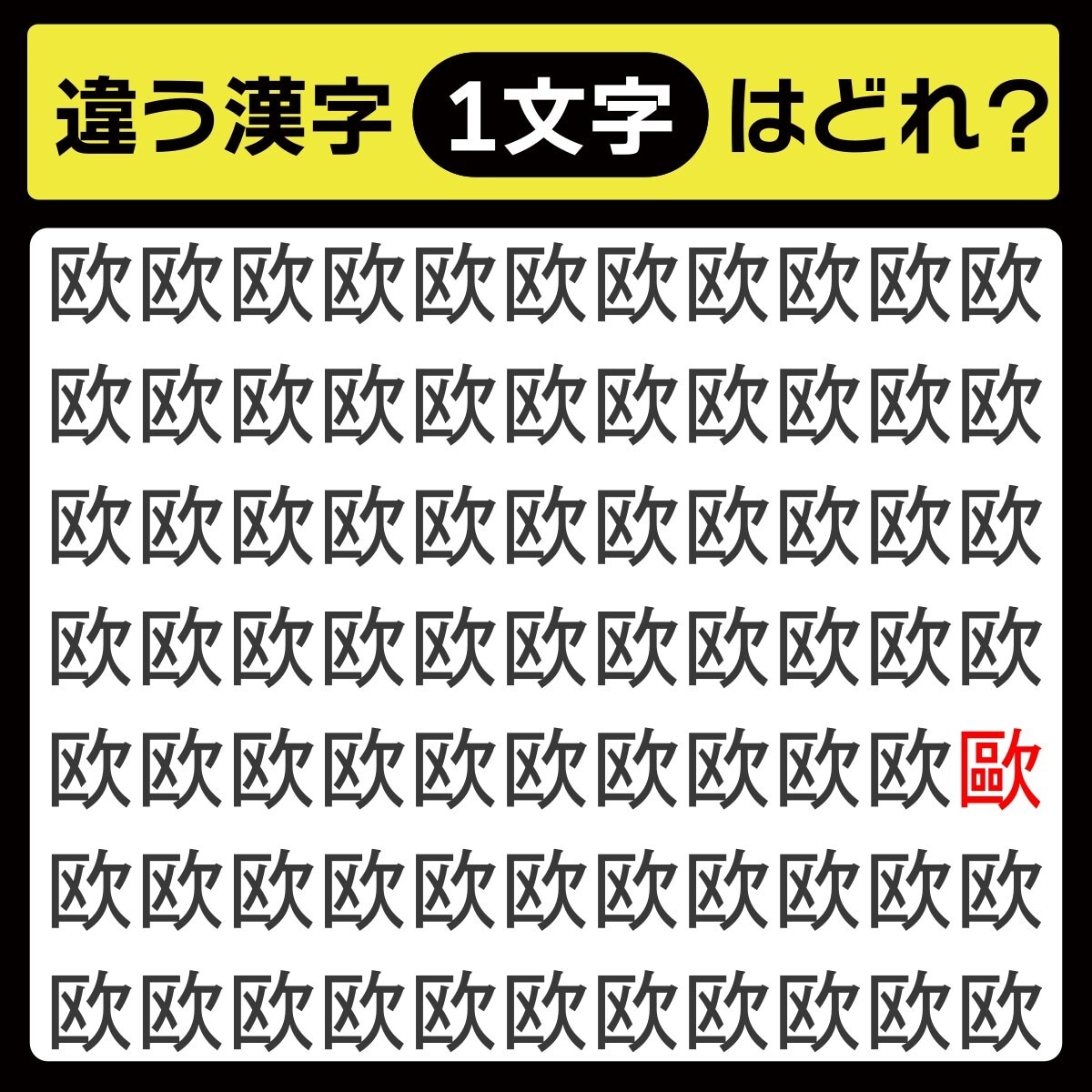 「欧の中に隠れてるのは?」漢字間違い探しで脳トレしよう!【毎日脳トレ】【クイズ】