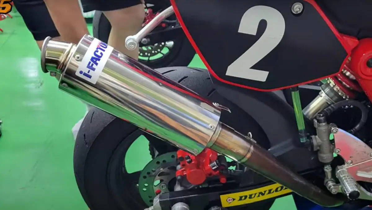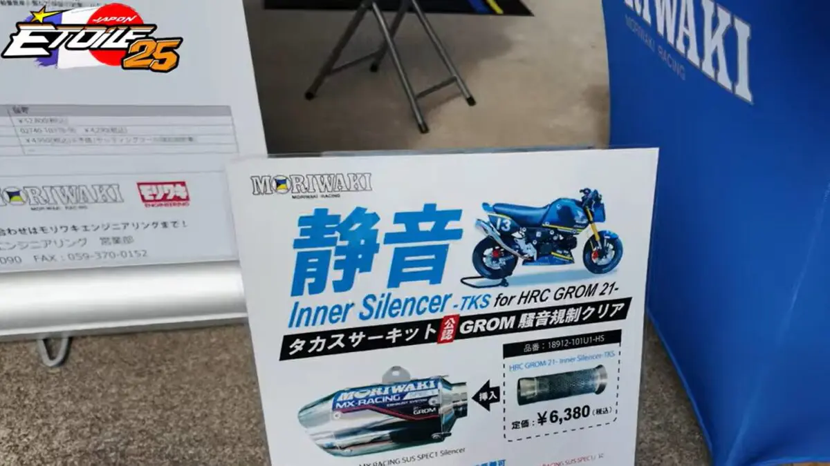 HBFは2022年の大会で近隣から騒音苦情が入った事により、厳しい騒音規制を課すことになりました。走行時の最大音量90dB以下という厳しい内容ですが、24年は嬉しい展開がありました。世界の森脇レーシングさんに全面協力いただき、タカス対応インナーバッフルを開発。当日は出店という形で技術協力してくれました。