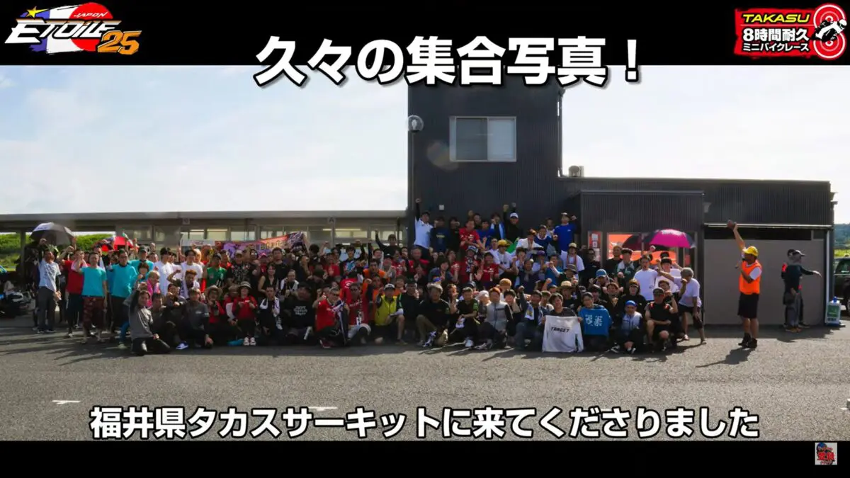 HBFこと北陸バイクフェスティバルは2024年に51回目を迎え、9年目となるエトワールタカスミニバイク8時間耐久レースを開催しました。昨年からタカスサーキットは音量が厳しく規制されましたが、24年も引き続き規制を受けた開催となりました。それにより参加台数が減ることが懸念されていましたが、すぐにエントリー募集定員数に到達。全国はもちろん香港からも含め、約200名のライダーが参加しました。