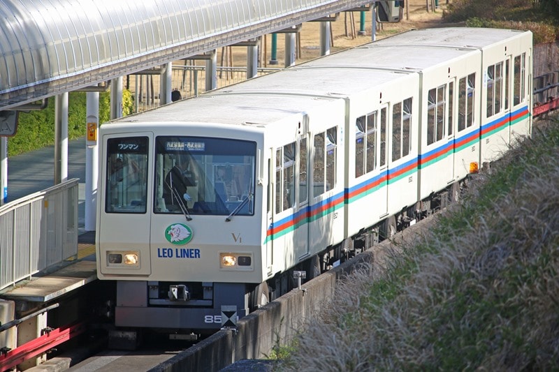 車体は1両8メートルの小型車体による4両編成で、ゴムタイヤで静かに走行。車両性能面では、VVVFインバータ制御装置により誘導電動機を駆動する省エネ車両でもあります。