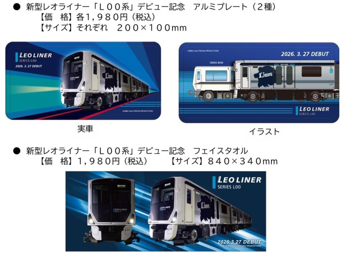 西武球場前駅などでは、3月27日の運行開始に合わせて、L00系デビュー記念グッズのが販売になります。