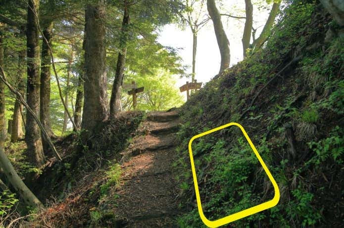 ヤマビルは、草や石の下、落ち葉の下など、湿気の多いところに潜んでいます。登山道を歩くときには、特に日陰になりやすい山側の足元に注意しましょう。