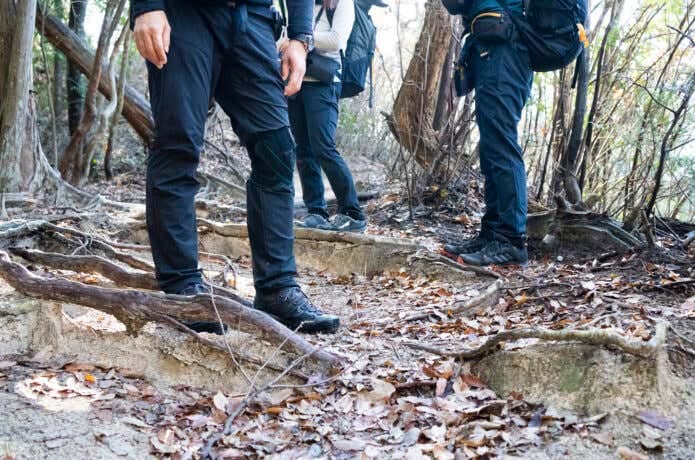 ヒルが生息するエリアの山を歩く際は、長袖・長ズボンを着用しましょう。日本のヒルの場合、上から落ちてきて被害にあうことは少ないので、足元の対策をしっかりととることが、一番の予防策となります。