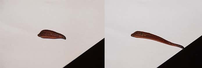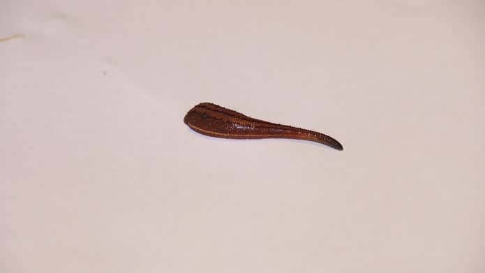 通常2cm程度の体長ですが、伸縮性に富んでいるため8cmくらいまで伸びることもあります。さらに、弾力性もあり、引っ張ってもちぎれないのもヤマビルの特徴。