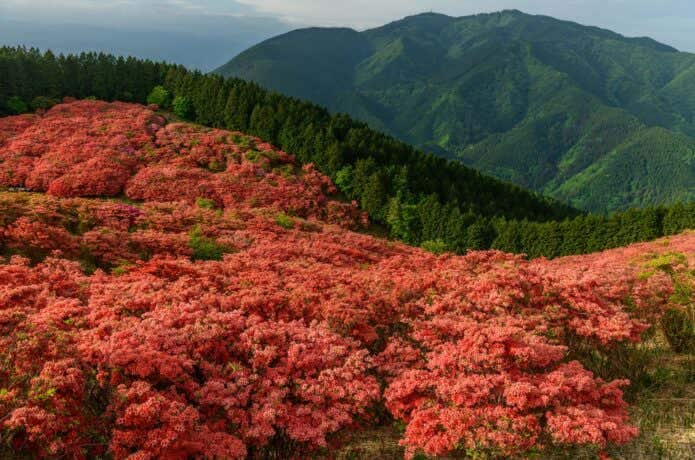 カタクリの群生地は、山頂近くにあり、九州内外からたくさんの登山者が訪れます。