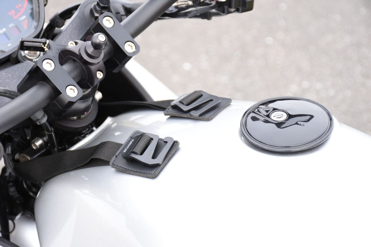 今回は、筆者の愛車・1100Sカタナに取り付けて走ってみたけれど、高速道路を走った時もマグネット固定はガッチリと安定していて、心配ならばステアリングヘッドからストラップを伸ばしてもいいな、と思うくらいだった。