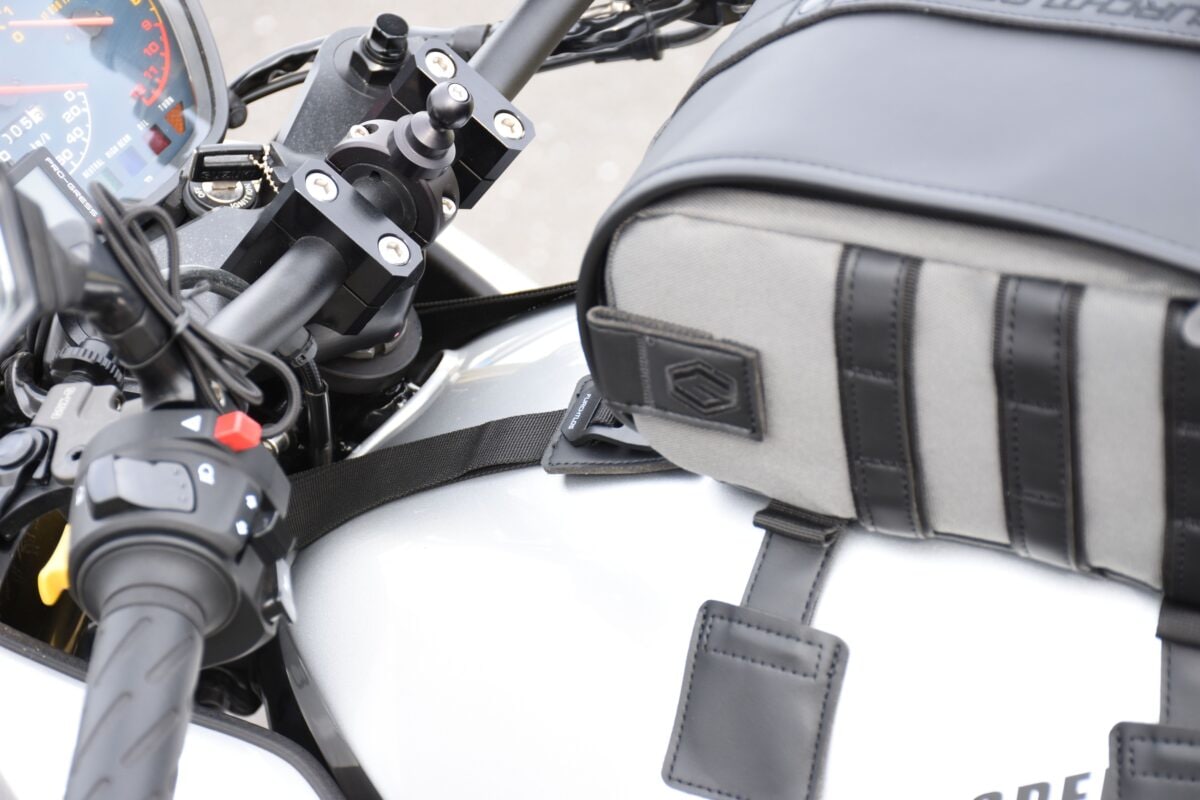 タンクにもシートにも装着できる、レガシー・タンクバッグの柔軟性