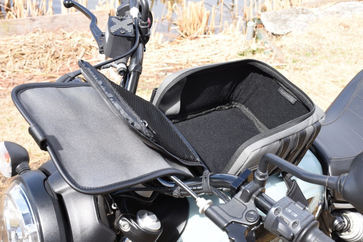 そんな時は、タンクバッグがいい。身の回りの細かいものを仕舞っておいて、目的地やカフェに着いたら、バッグごと取り外して持ち運び。だからタンクバッグは、車両に取り付けやすく、外しやすいものがいい。
