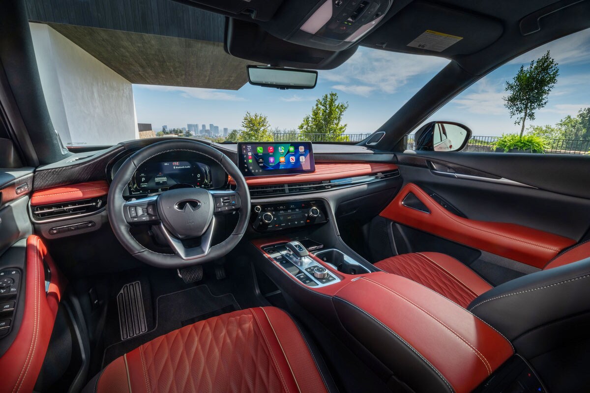 インテリアは、インフィニティが掲げる「エレベーテッド・ホスピタリティ」の思想を体現。緻密に仕上げられた素材、クラフトマンシップ、そして直感的に使えるテクノロジーを組み合わせている。