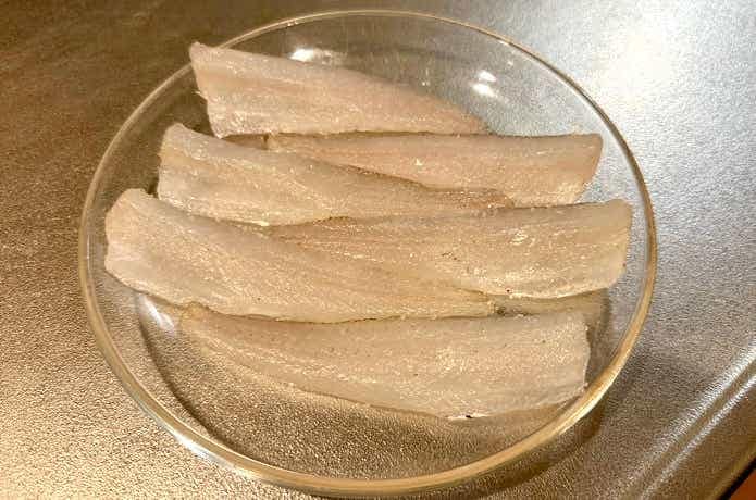 ①魚の表面に塩を振り、冷蔵庫で20〜30分ほど置きます。