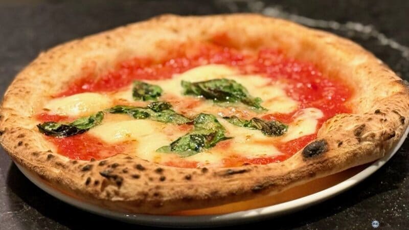 ビスマルクとマルゲリータを試食。どちらも生地が美味しい! ナポリピッツァらしく、外はカリッと中はしっとり、もちもちでした。その他、ディアボラやクアトロフォルマッジも提供しています。