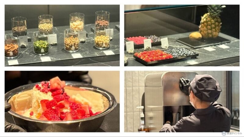 好みに合わせてベースやトッピングを選び、注文後に目の前で仕上げてくれるジェラートです。マイナス196度の液体窒素で瞬間的に冷やし、質感の変化を一瞬で閉じ込めることで口当たりのよい、なめらかでフレッシュな味わいに仕上げます。