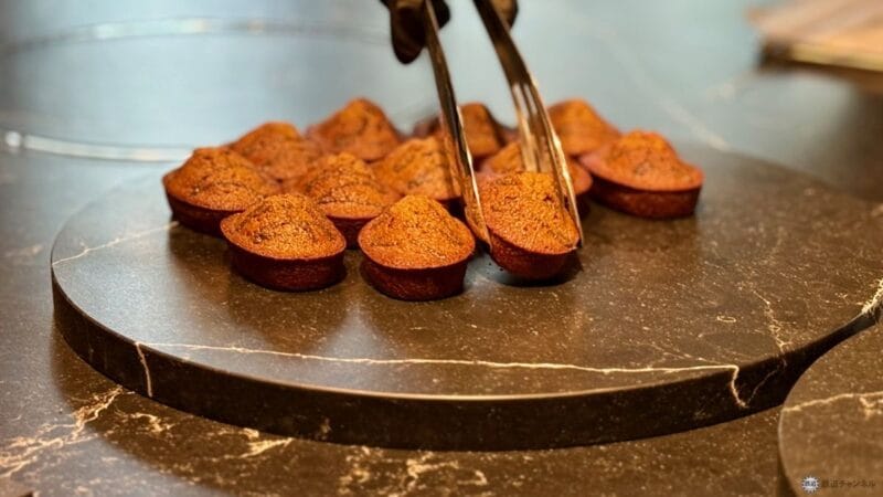 取材時はフィナンシェの試食がありました。店頭に焼き上がり時間の表示があり、合わせて来店すれば焼きたてを食べることができます。