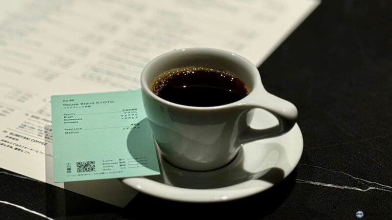 試飲ではブラジル・グアテマラ・エチオピアをブレンドした「ハウスブレンド京都」をいただきました。通常はマグカップサイズの大きなカップで提供されます。