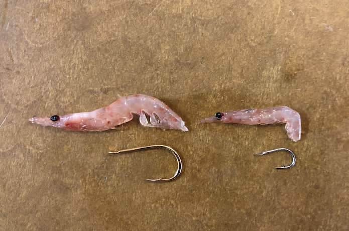 オキアミに対して大き過ぎる鈎を使用すると、当然ながら付け難くなります。また、魚に違和感を与えることもデメリットです。