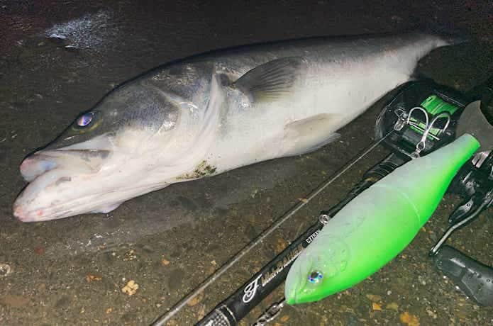 また着水音が大きいビッグベイトでは、音で寄ってきたシーバスが、動き出しの段階ですぐに反応することも。