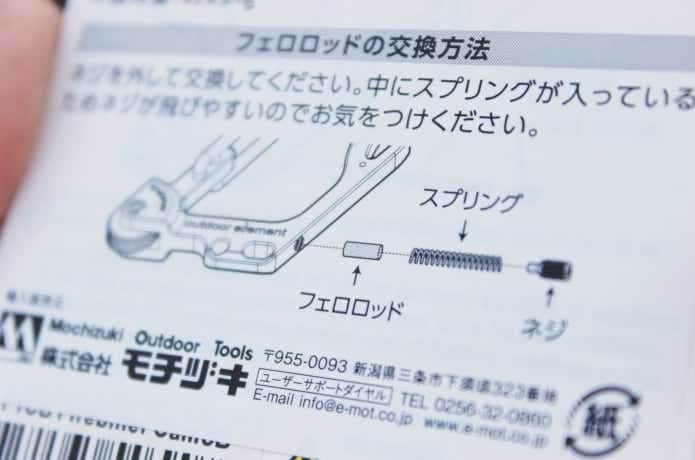 パッケージには替えのフェロロッドがついているので、ファイヤービナーを取り外したあとうっかり捨ててしわないように気をつけたいところ。