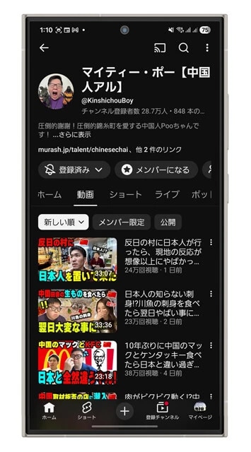チャンネルでは中国人視点での日本や中国のヤバいところを紹介しつつ、ボンボン中国人ならではのグルメ情報も充実。ちなみに、ポーちゃんはお笑いコンビ「チャイニーズ☆チャイ」で芸人としても活動中。相方のおかだくんは撮影担当。