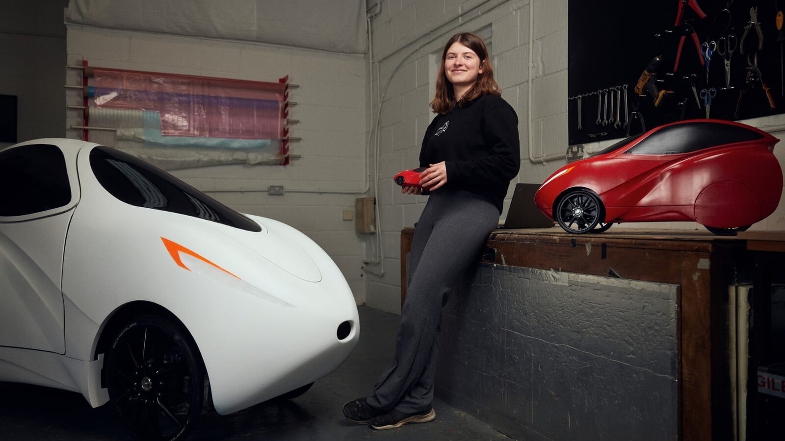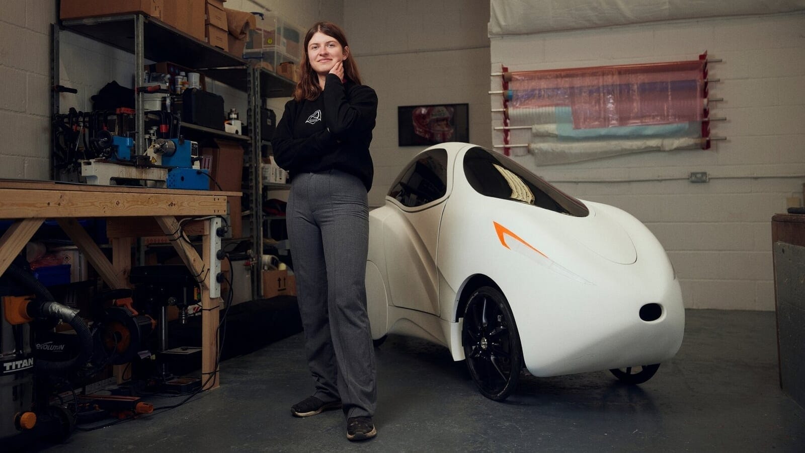 そこで、私は思い切って聞いてみた…。なぜ彼女は今、自身のワークショップで、これまでに考案された中で最もカーボン排出量の少ない公道走行可能な車両のプロトタイプモデルに囲まれているのだろうか? なぜ彼女はブラックリー(メルセデスF1の拠点)や、ミルトン キーンズ(レッドブルF1の拠点)、あるいはマラネロ(フェラーリの拠点)で製図板やCADのシミュレーションデータに釘付けになっていないのだろうか?