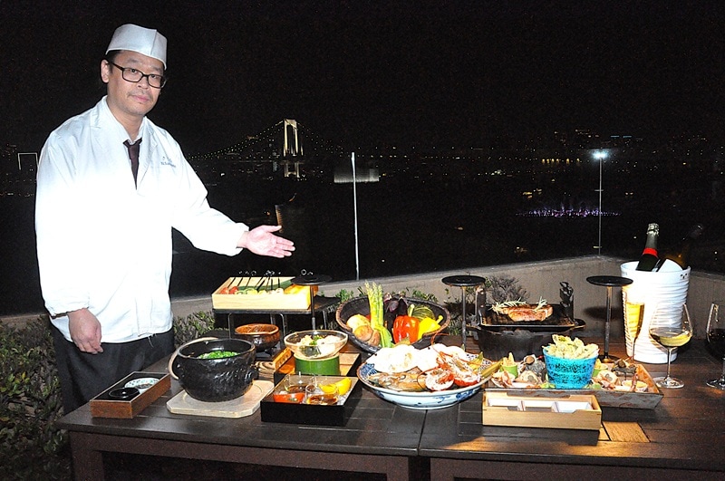 噴水ショーと東京タワーのツイン競演 “夜花”と楽しむ炭火焼き提供 ヒルトン東京お台場・日本料理店