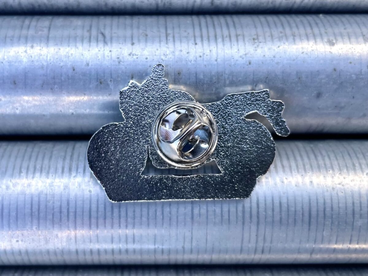 シルバー系の車体にブルーやホワイトのライン入りタンク。 ホンダのレーシングスピリットを象徴する配色で、昔の名車の雰囲気を現代に再現しており、ファンの方には刺さる王道配色なのではないでしょうか。今回のピンバッジも細かいところまでデザインを追求しております。