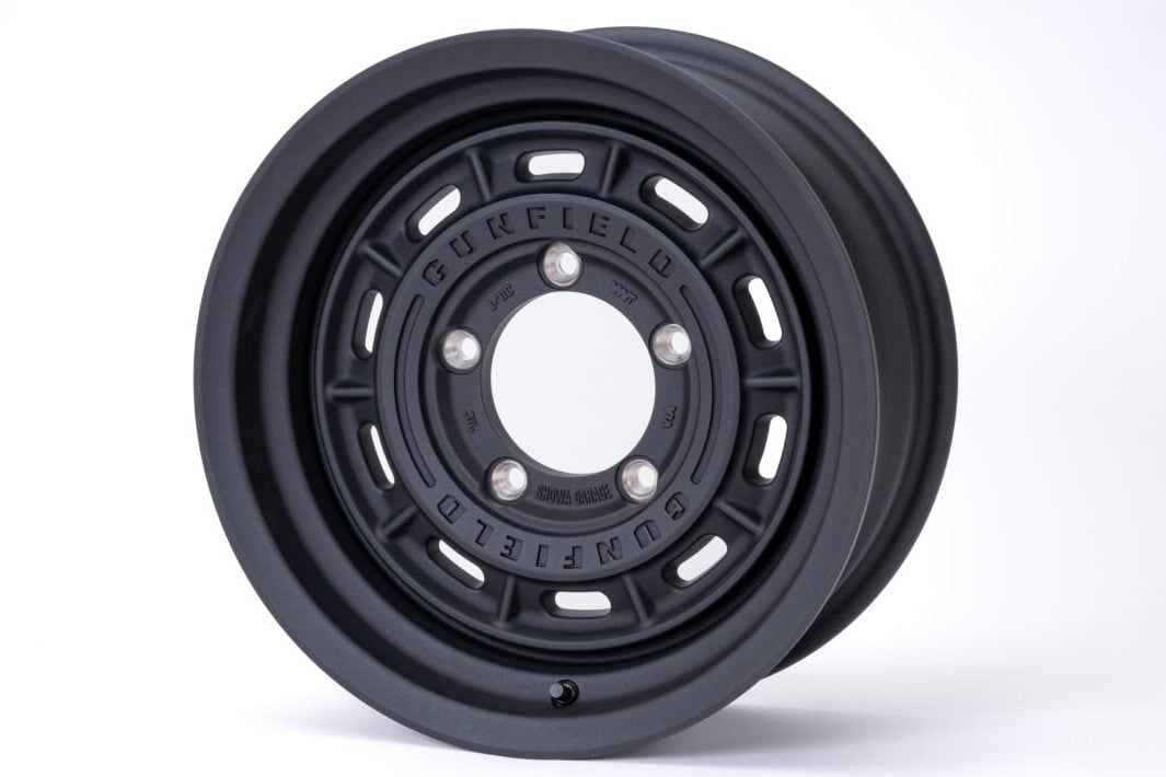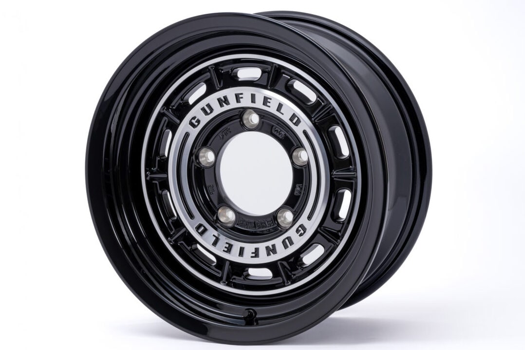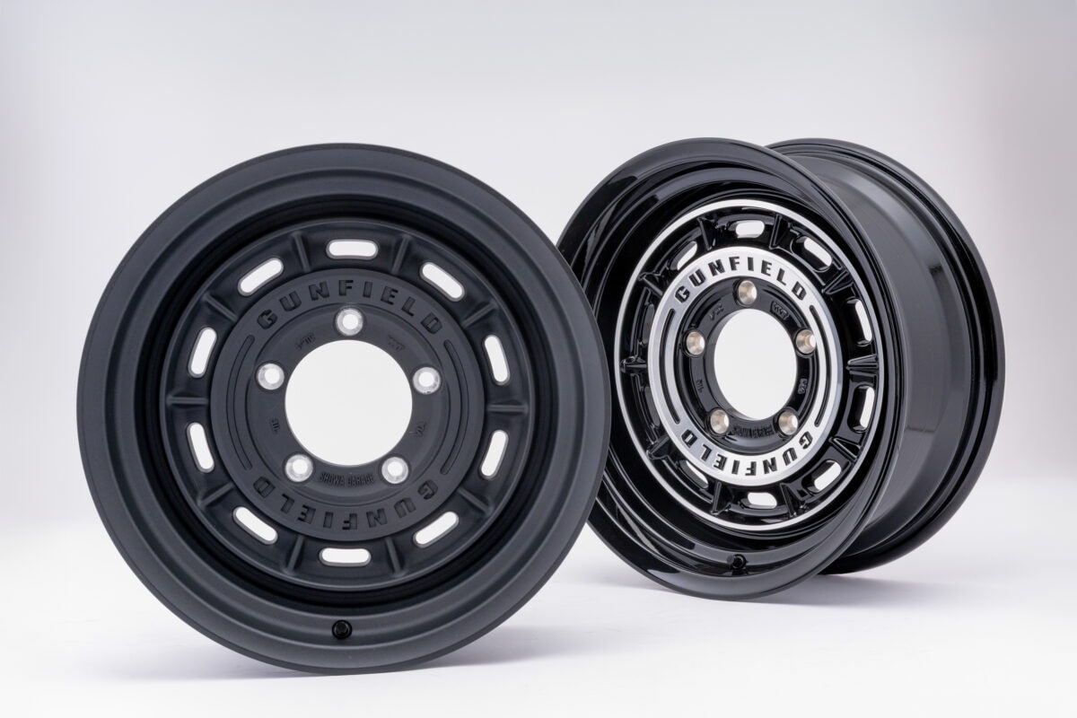 街乗りジムニーをイメージして開発されたのが、「GUNFIELD」だ。どこか懐かしさを感じさせるネオクラシカルな“鉄チンホイール”のテイストを取り込みながら、立体感のあるディスクデザインで現代的な表情に仕上げている。