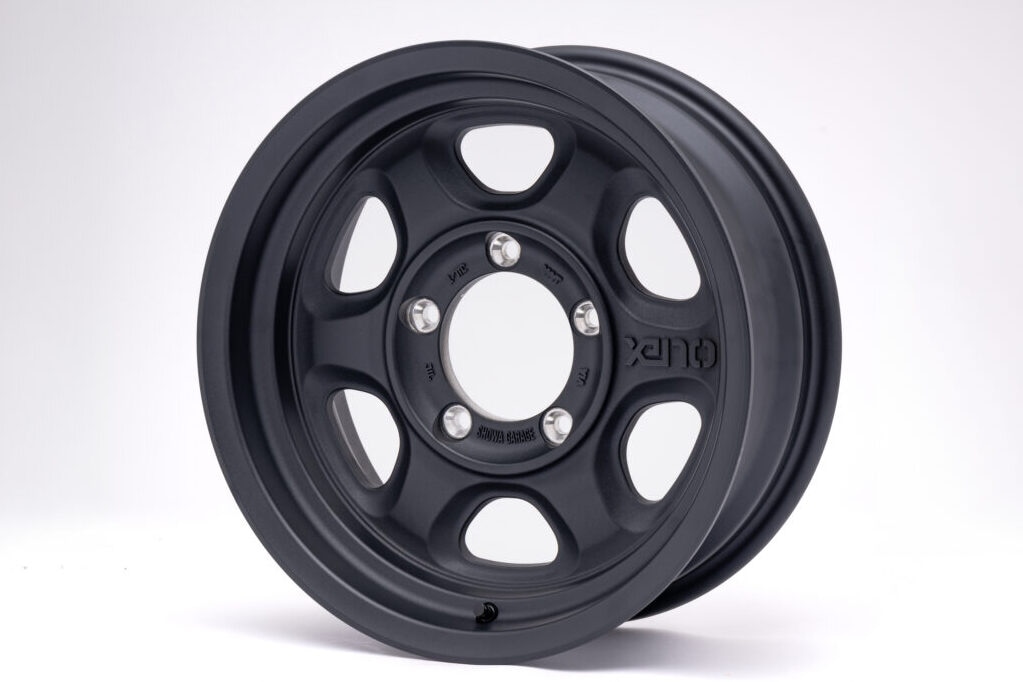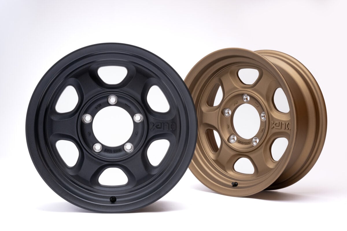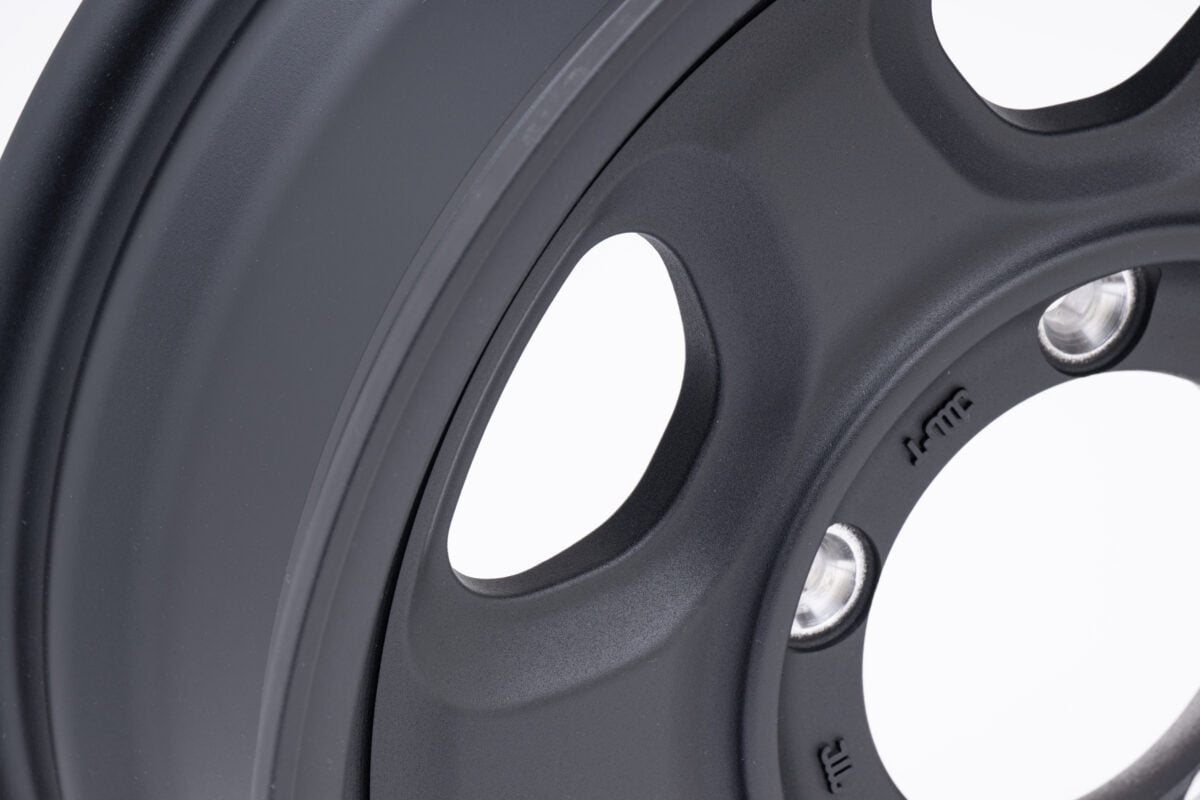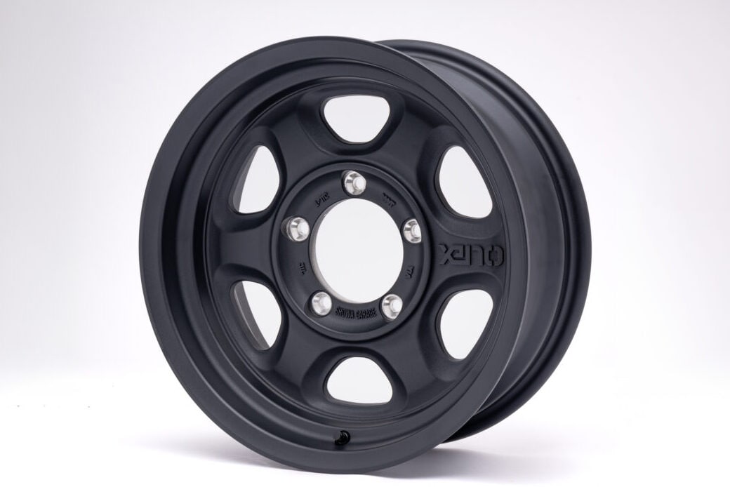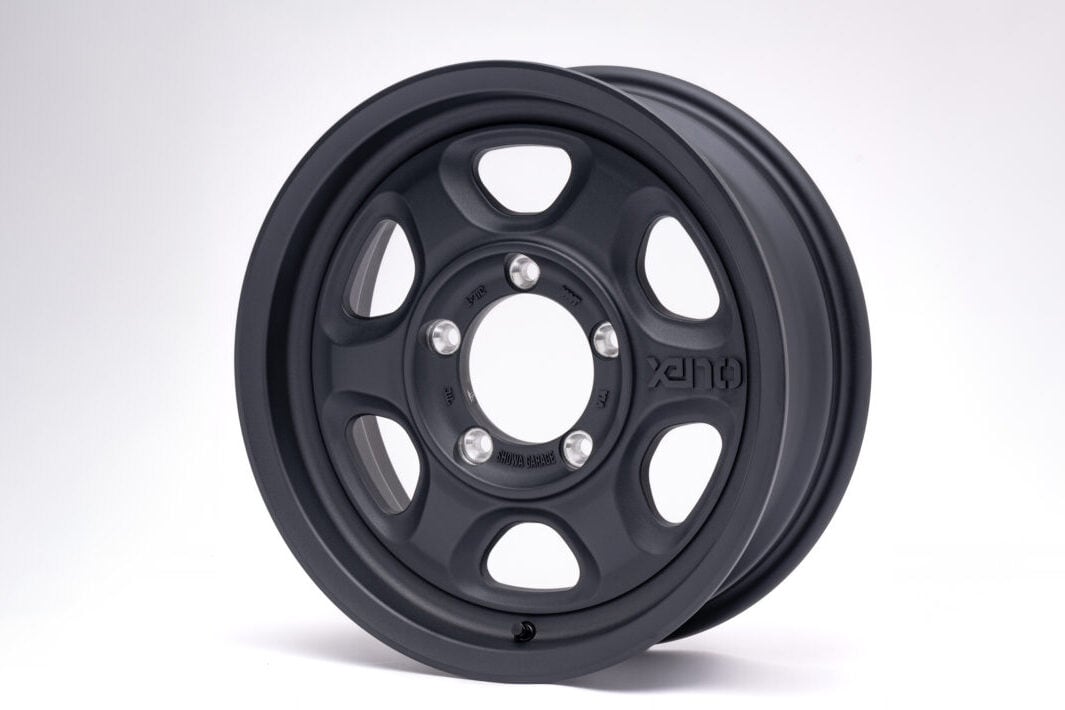 サイズはジムニー(JB64/JB23)にジャストな「16×5.5J +20」を設定。さらにジムニー・シエラ&ノマド(JB74/JC74など)向けに「16×6.0J ±0」をラインアップ。いずれも純正フェンダーに収まるサイズで、装着するだけでワイルドなスタイリングに仕立てられる。