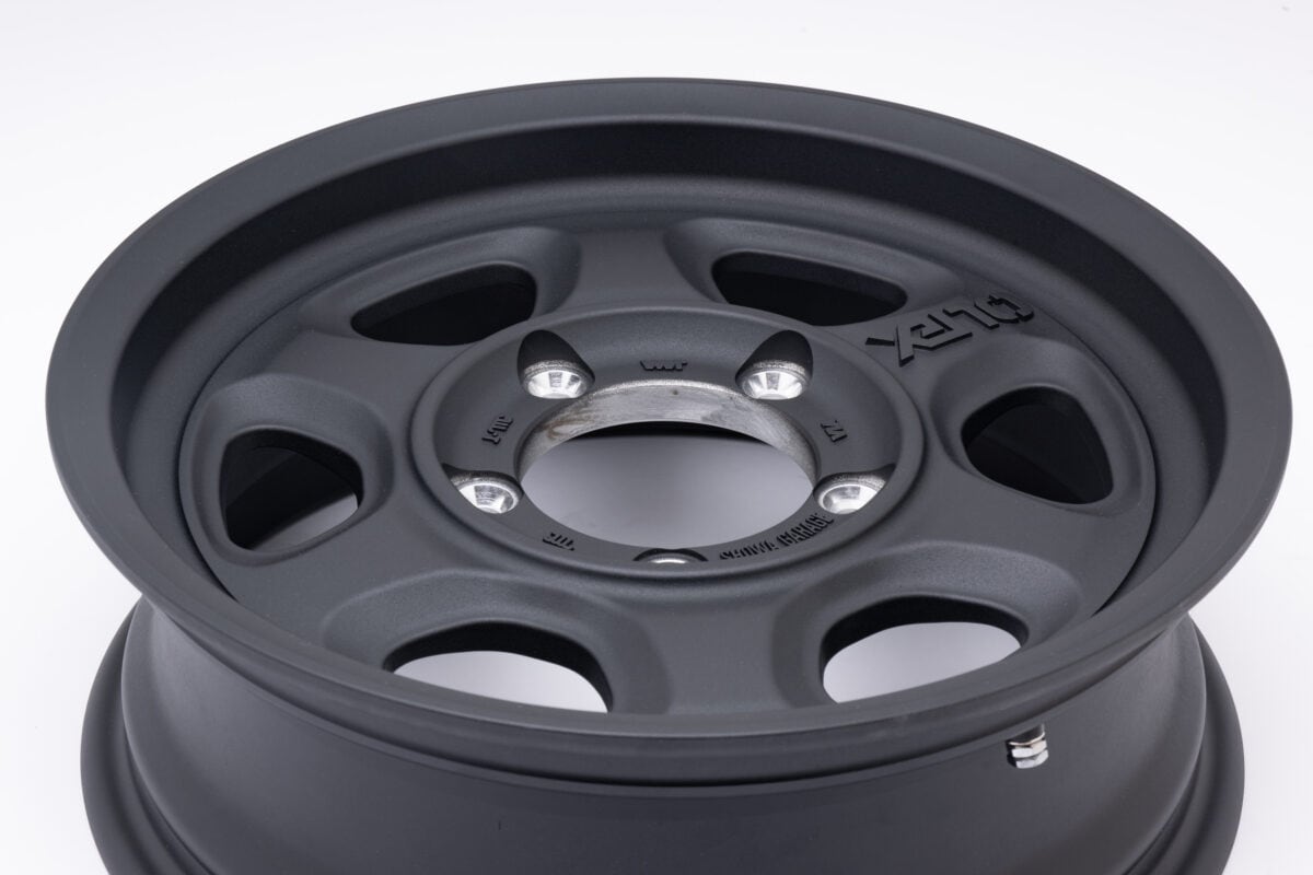もう一つのモデルが、オフロードホイールの王道スタイルを追求した「XENO」だ。5本スポークが多いなか、あえて6本スポークデザインを採用。力強さのなかにメリハリのある作り込みにより、ジムニーらしいタフな雰囲気をストレートに引き出している。