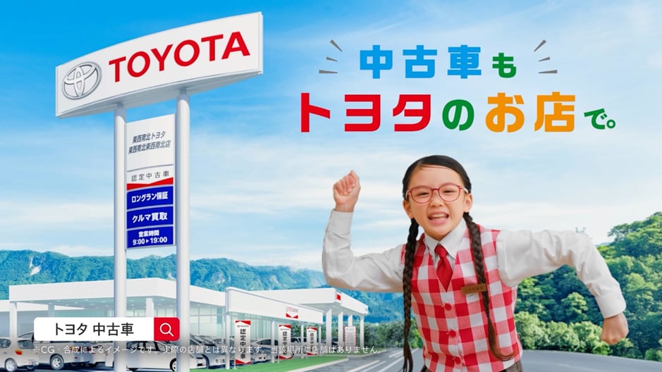 『中古車もトヨタのお店で』。「トヨタの中古車」ならば、プロの整備とサポート、全国約4500のネットワークで安心!