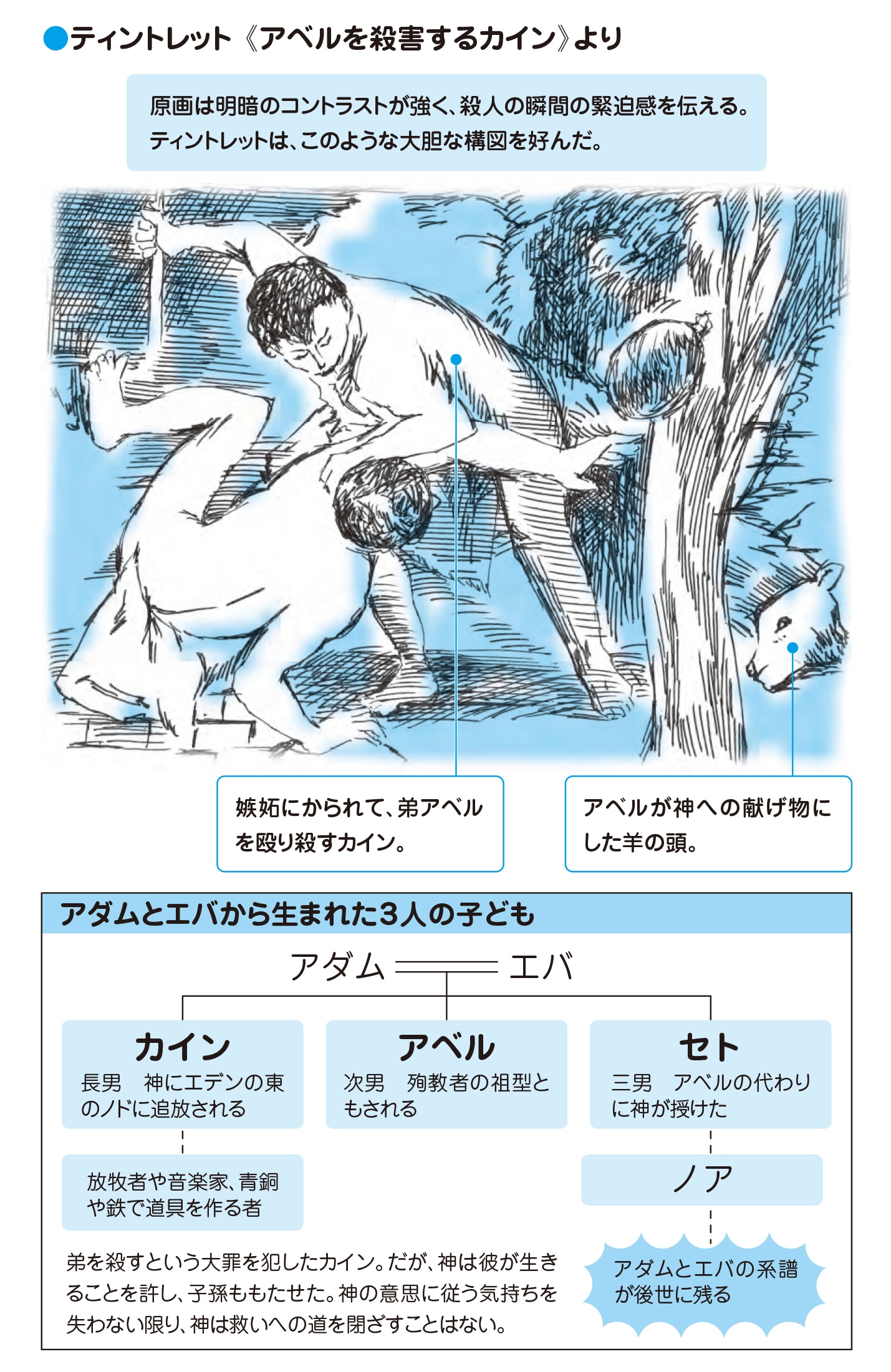 用語解説 *しるし 具体的にどのようなものなのかは不明。西洋世界では、私たちは弟殺しの罪を背負った「カインの末裔」とされる。