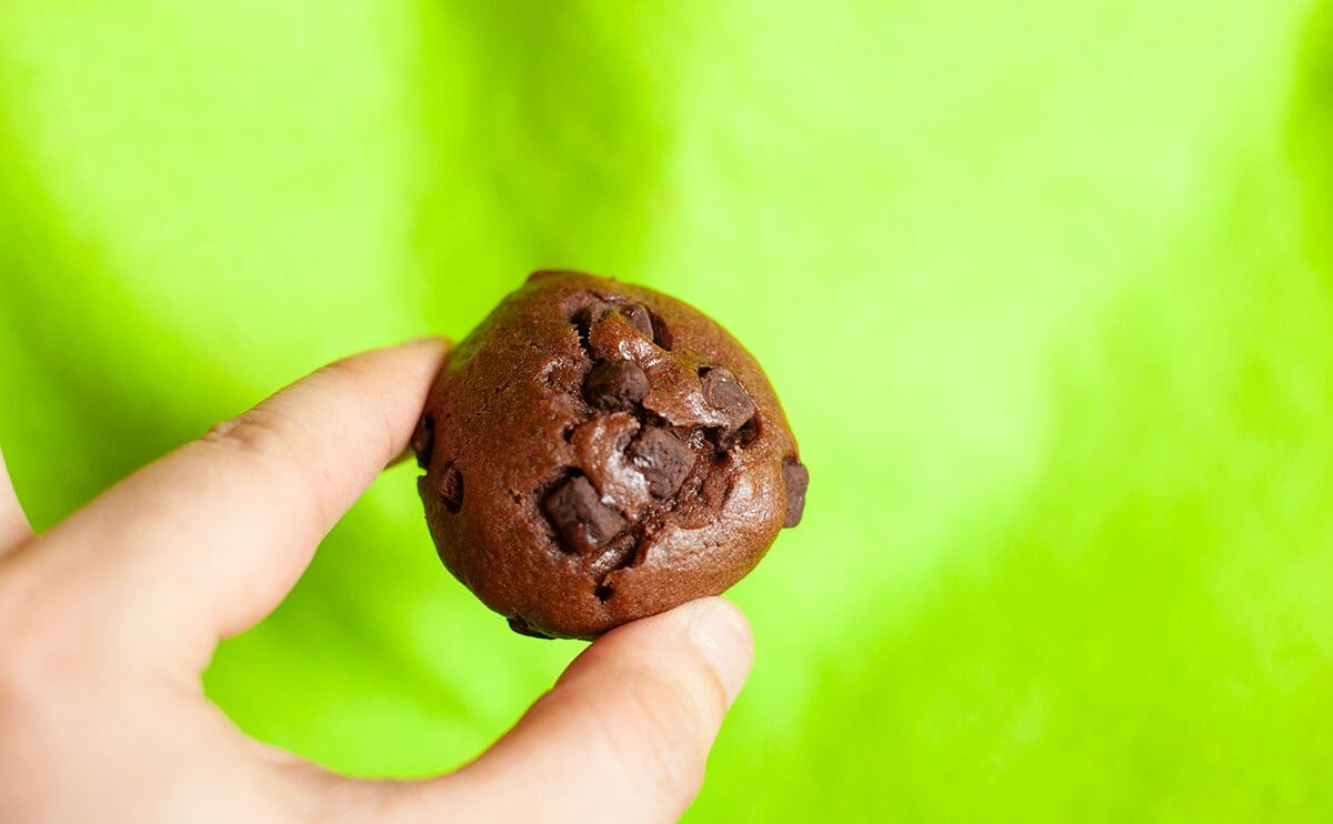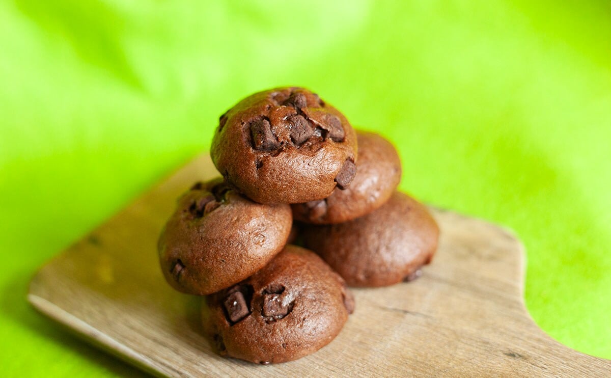 一口サイズのチョコパンが6個入っています。キューブチョコも贅沢に使用されていて、表面がぼこぼこしていますね。