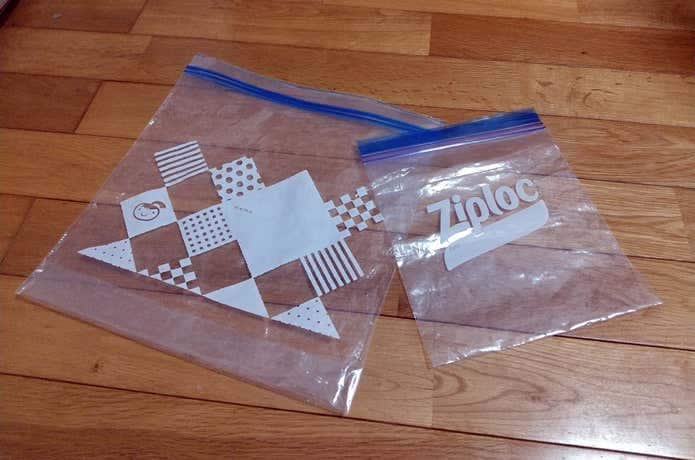 「ジップロックなどのチャック付きビニール袋なら安く済むのでは?」