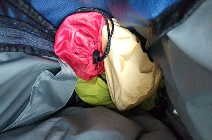 濡らしたくないアイテムは防水タイプのスタッフバッグに分けて収納するのが基本ですが、使用するスタッフバッグの数が増えるとその分荷物全体の重量は増えてしまうデメリットもあります。