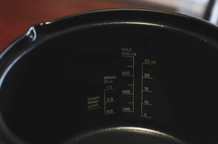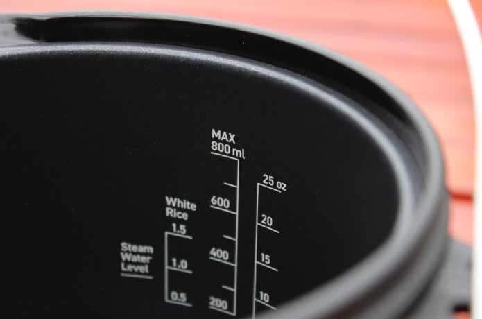 内側にはメモリが2つ。お米を炊くときの水量もひと目で確認可能です。