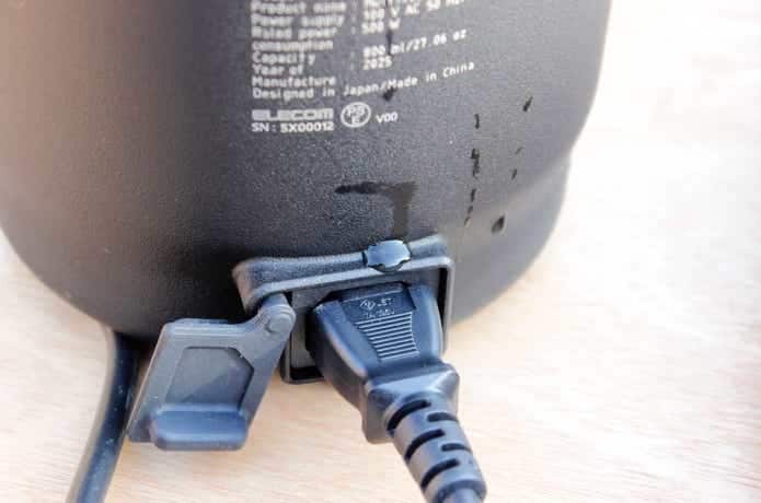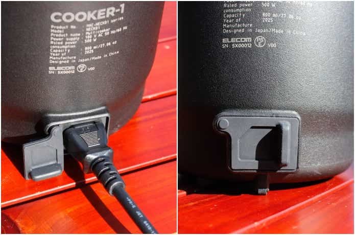 差込口には電源カバーがあるので、水や汚れが入りにくい構造になっていました。