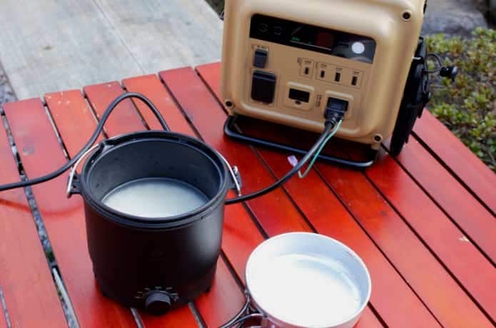 COOKER-1の使用には、別途ポータブル電源(500W以上)を用意します。ポタ電は同じくネストアウトの「700N」を使用しました