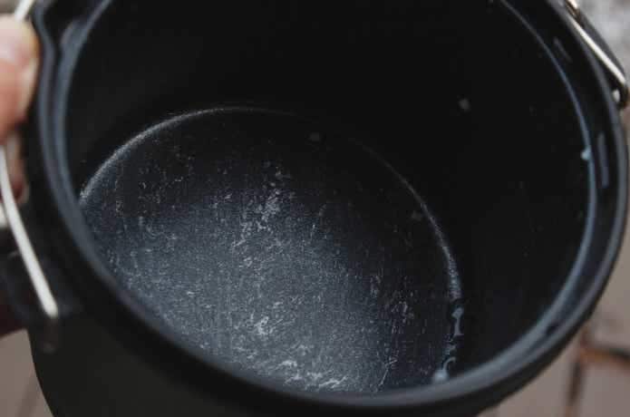 内釜にはフッ素樹脂コートがなされていて、つるっとしています。これは汚れが落としやすそう。