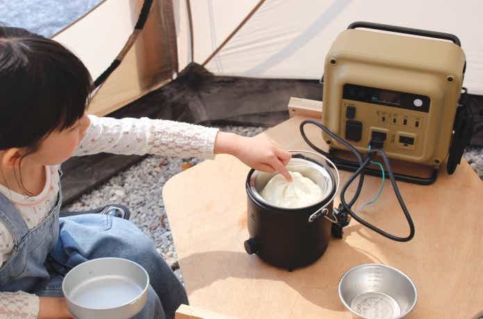 用意するのは、500W以上のポータブル電源だけ。コンセントにプラグを挿すだけで準備完了なので、ガス缶を用意したり、火加減を気にしたりする必要なし。