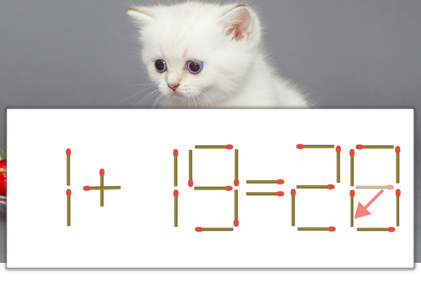 「9」を別の数字に変化させると答えが導き出せます。「9」のマッチ棒を1本移動して、「9」を「0」にしてみましょう。すると、「1+19=20」が成立します。