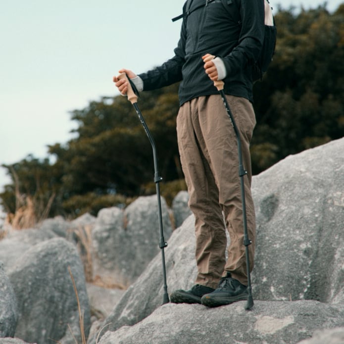 登山アプリでお馴染みのYAMAP(ヤマップ)が新たに提案するのは、人間工学に基づく「くの字型」のトレッキングポール。体への負担を抑えつつ、一歩を自然な推進力へと変える新発想の一本です。長く歩くほどに、その圧倒的な違いを実感できるはず。