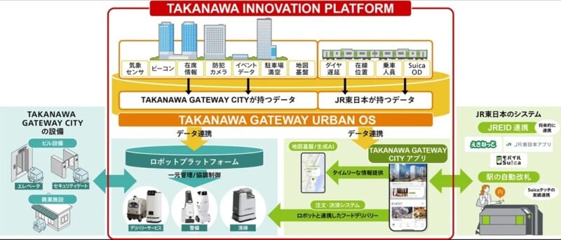 「TAKANAWA GATEWAY CITY」では、この街を空間自在プロジェクトのコアシティと位置付け、鉄道運行データやロボット、Suicaなどの情報と連携し、滞在時の快適性を高める「TAKANAWA INNOVATION PLATFORM」を提供しています。ここから生まれる新たなサービスを発信することにより、さまざまな社会課題を解決する「分散型スマートシティ」の実現を目指しています。